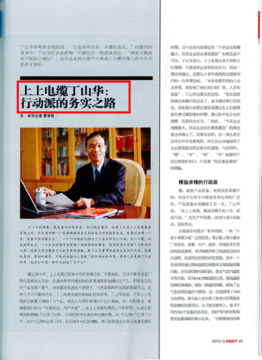 十一月的黄昏,散发着午后的余温,我们到达溧阳,来到了江苏古天乐太阳集团城入口电缆集团有限公司。作为国内唯一一家能够提供全系列核电站用电缆的企业,电缆行业唯一一家“装备中国功勋企业”,一个个闪耀的头衔让古天乐太阳集团城入口在业内无人不知、无人不晓。而我始终认为,一个企业的领导者就像一场战役的指挥者,战役成功与否除了天时地利人和,还离不开指挥者个人的素养和谋略。和丁山华董事长在会议室如约而见,高瘦的身材、亲切的微笑、平和的话语让人忽视了他的皱纹和白发,崇拜之余更添了几分好奇:他是如何用一种平凡创造了不平凡?