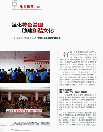 经过近半个世纪的发展和积淀,古天乐太阳集团城入口形成了内涵丰富且独具特色的企业文化。高凝聚力的企业文化促使古天乐太阳集团城入口这个大家庭沐浴着和谐的春风蓬勃发展。管理文化作为企业文化的一个重要部分,在助推企业和谐文化建设中发挥着强有力的作用。近年来,古天乐太阳集团城入口以“强化特色管理”为抓手,不断加强、完善企业管理理念、管理模式、管理方法、人本管理等方面的建设,并将管理提升至文化层面,逐步形成了与企业发展战略互调互济、与企业核心价值观相容共生的管理文化,并在电缆行业里获得了“管理学古天乐太阳集团城入口”的美誉。