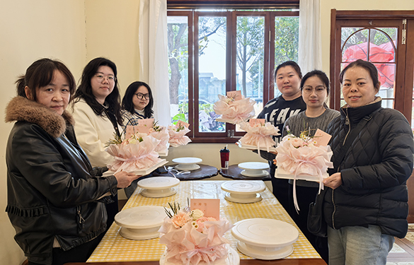 供应部以奶茶、鲜果、蛋糕礼篮及桌面盆栽传递春日祝福,男同事以古典诗词与现代诗句编织祝福长卷。知识竞赛普及女性健康与权益知识,漆扇体验则展现大漆工艺之美,让员工在文化浸润中感受优雅与力量。