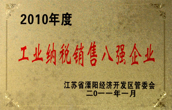 1月26日,溧阳经济开发区管委会代表溧阳市人民政府授予江苏古天乐太阳集团城入口电缆集团“2010年度科技创新企业”与“2010年度工业纳税销售八强企业”铜牌。