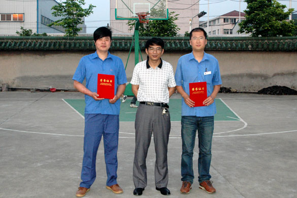 得分王中压分厂杨军(左一)、精神风尚奖船缆分厂王越(右一)