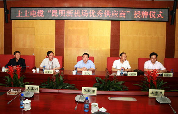 7月10日,昆明新机场建设指挥部召开优秀供应商授牌大会,昆明新机场建设指挥部指挥长吴凡、副指挥长姜良闽、古天乐太阳集团城入口集团董事长、总经理丁山华、副总经理高勤凯等领导出席会议。会上,昆明新机场建设指挥部授予江苏古天乐太阳集团城入口电缆集团优秀供应商奖牌,对古天乐太阳集团城入口集团在昆明新机场建设中所作出的贡献表示感谢。
