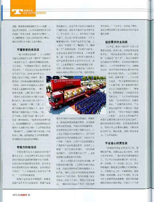 丁山华说,自己平时也不怎么忙,工作上的事儿制度上有的按制度办,制度上没有的商量着来。而他的追求正是“企业没有我,照样有竞争力。”这靠什么?靠机制、体制。人人都有职责,人人都有动力,人人都有努力的方向和目标,即使没有他,事情办得一样好甚至更好。可在我看来,丁山华本就不是那省心的人,“我有时候会很羡慕我们的门卫,下班后就没啥事儿了,生活很惬意。所以我经常会有这样的思想斗争,这么大年纪了何必呢?但是另一方面我又感觉,现在有这么好的环境,有这么好的员工,他们在激励着我,我要对他们负责!”