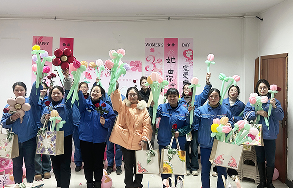 橡缆事业部打造沉浸式节日体验:清晨的玫瑰与蛋糕开启甜蜜序章,午后“石矶娘娘打卡墙”吸引众人定格倩影,将传统文化与现代审美巧妙融合。主题视频观影与有奖问答环节,通过追溯妇女节115年历史脉络,深化女员工对性别平等的认知;扎气球成郁金香的创意互动,则让职场压力随风消散,绽放出象征希望的春日花海?。