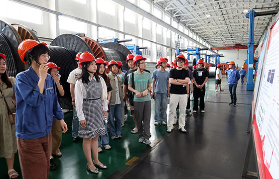 在超高压智能生产车间,南航师生近距离观摩了全球领先的电缆生产设备与智能化制造流程。技术员详细讲解了超高压电缆的挤出、交联、检测等核心工艺,并通过MES系统实时数据展示了生产线的精细化管控能力。面对学生关于设备参数、工艺优化及质量追溯的提问,技术团队一一解答,现场互动热烈。