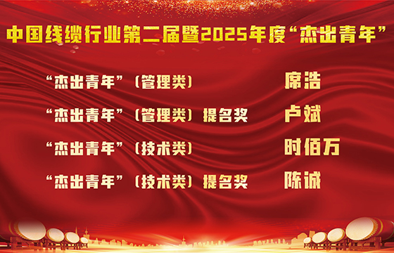 5月4日,在五四青年节之际,由中国线缆网组织的中国线缆行业第二届暨2025年度“杰出青年”评选结果揭晓,江苏古天乐太阳集团城入口电缆集团四位青年脱颖而出。新能源事业部席浩、企管办卢斌分别荣获管理类“杰出青年”及提名奖;技术中心时佰万、装备部陈诚分获技术类"杰出青年"及提名奖。