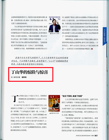 显然,丁山华已经在努力使自己变成“多余的人”。不过他笑言,以后变成了“多余的人”,也不知该如何潇洒,因为之前没打下潇洒的基础,一直在忙着工作。“企业一直在运转,我也跟着运转,像进入了一个漩涡,我和这个企业分不开了。”